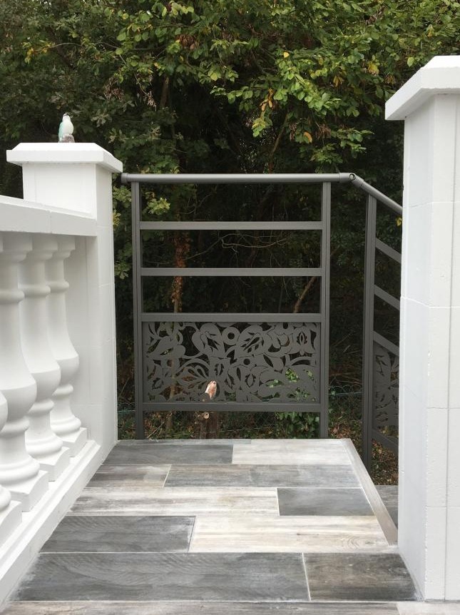 Sur mesure, les cloisons décoratives s'intégrent parfaitement au style de votre balcon, terrasse ou jardin. Les panneaux peuvent être coordonnés à votre portail, portillon, clôture et garde-corps, dans le coloris et le motif.